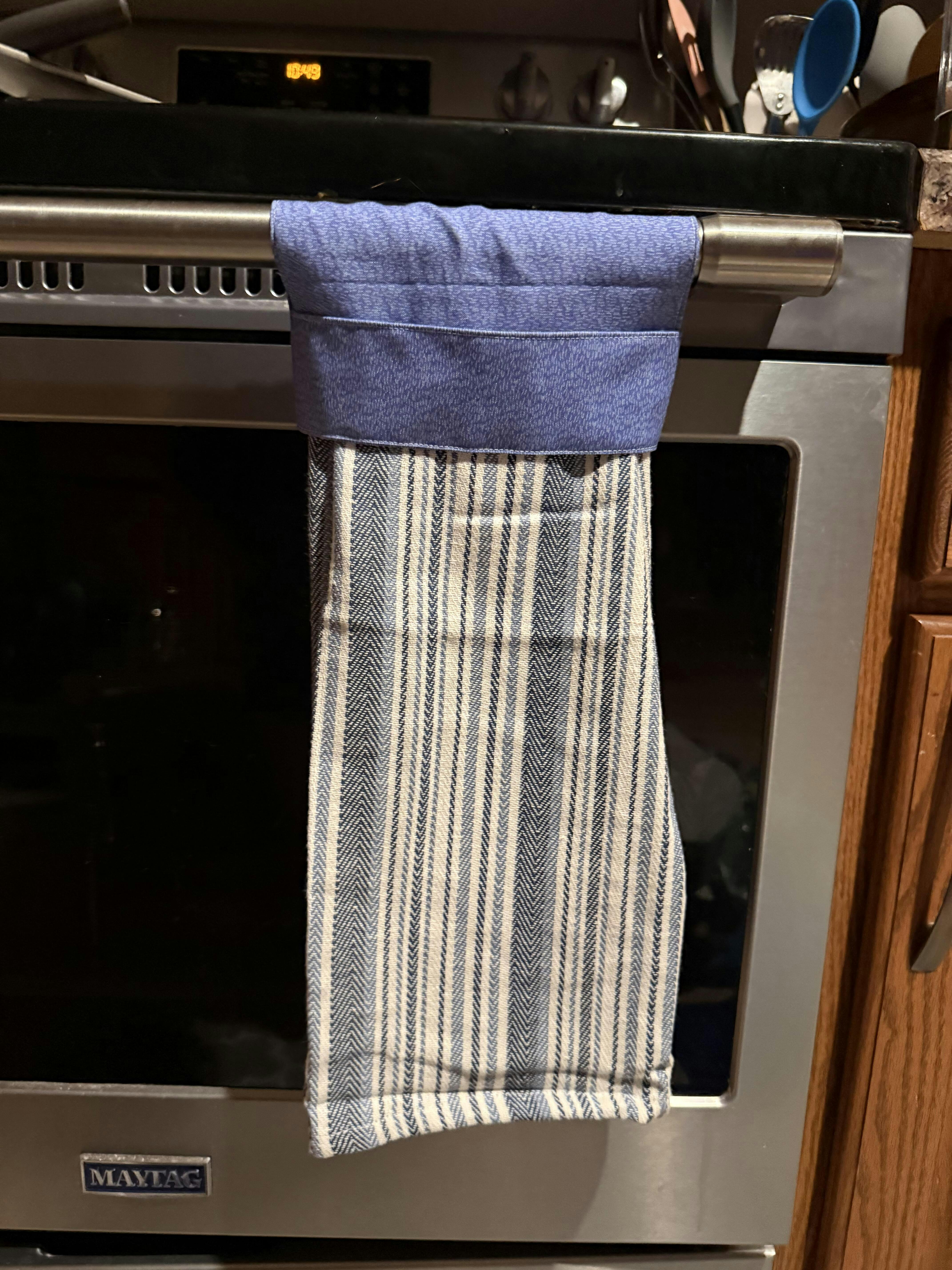 Unlike traditional hanging tea towels, this design requires no buttons, snaps, Velcro, or gathered fabric—just a clean, modern finish that looks great in any kitchen. It’s quick and easy to sew, making it perfect for gifts, craft fairs, or adding a handmade touch to your home.